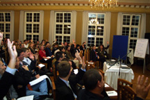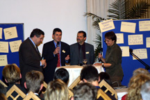 Die über 90 Führungskräfte erarbeiteten in mehreren Gruppen Kernaussagen zum Thema "sich(er) entscheiden". Aussagen wie "Mut zur Entscheidung", "zielorientiertes Entscheiden" oder ganz einfach "Jetzt oder nie!" zeigten, dass die Ausführungen der Entscheidungsprofis Merk und Müller angekommen waren - Manager, Geschäftsführer oder Vorstände, die sich nie gesehen hatten, geschweige denn einen Prozess der Entscheidungsfindung je zusammen durchlaufen wären, gelang es binnen kurzer Zeit, sich gemeinsam für eine Kernaussage zu entscheiden.