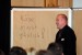 Wie das Aktionstheater die speziellen Befindlichkeiten innerhalb eines Unternehmens umsetzt, erfuhren die Teilnehmer des Themenabends im zweiten Teil. In Gruppen sammelten sie Aussagen, was sie beim Veränderungsprozess Kraft kostet. Zum Beispiel, wenn Unsicherheit und Unklarheit besteht. Daraus kreierten die drei Schauspieler eine Szene, in der zwei Projektleiter für die Vorbereitung einer Präsentation von ihrem Chef lauter kurze, unvollständige und sich widersprechende Informationen und Anweisungen bekommen. Ratlos brüten sie darüber, wohl wissend „er meint ja soviel, wenn er so wenig spricht...“