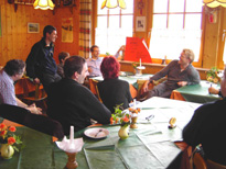 „Welchen Weg würden Sie gehen und wieso haben Sie sich so entschieden?“ war eine der Fragen, die nach einer einstündigen Bergwanderung in der Hütte diskutiert wurden. „In wie weit erkenne ich Zusammenhänge mit meiner persönlichen und beruflichen Ziel- und Wegfindung?“ Sich darüber klar zu werden und sich mit anderen auszutauschen hat den Teilnehmern viele Denkanstösse gegeben.
