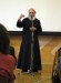 Der studierte Betriebswirt und promovierte Theologe zog seine Zuhörer mit seiner bildhaften und lebendigen Vortragsweise in seinen Bann. „Mitarbeiter müssen das Gefühl haben, ihr Chef stärkt ihnen den Rücken und fällt ihnen nicht in den Rücken“ übersetzte Anselm Grün die Regel des Ordensgründers Benedikt von Nursia, wonach ein Cellerar Vertrauen schaffen und Mut machen soll, für die Manager von heute. Auch eine Bibelgeschichte, in der eine bucklige Frau geheilt wird, übertrug der Pater anschaulich in die heutige Welt. „Wir führen gut, wenn unsere Mitarbeiter aufrecht nach Hause gehen“, sagte er. Wertschöpfung entstehe langfristig nur aus Wertschätzung, und nicht durch Druck und Drohungen. Dabei, so Anselm Grün, müsse die Führungskraft auch immer wieder die eigenen Motive hinterfragen.